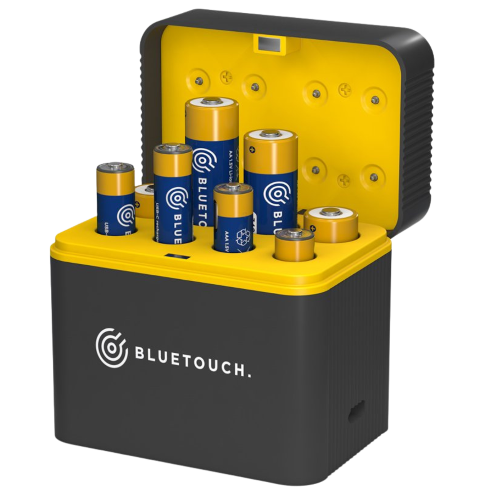 Kompaktná nabíjačka určená pre USB-C nabíjacie batérie AA/AAA. Dokáže nabíjať až 4× AA a 4× AAA súčasne s nezávislým riadením každého článku. Súčasťou balenia je sada 4× AA a 4× AAA BLUETOUCH USB-C nabíjacích batérií. Viac